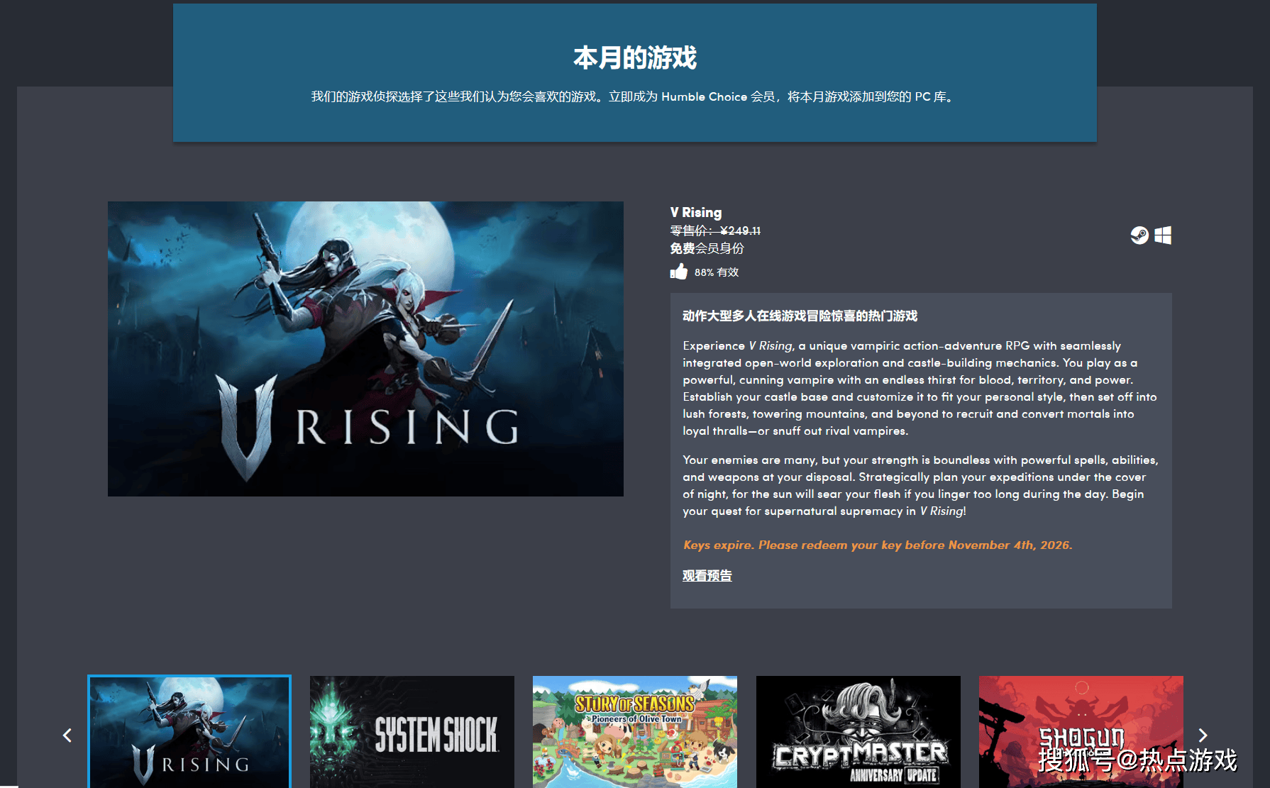 在完成订阅后,接下来每个月玩家都会收到来自humblebundle赠送的游戏,目前不少参与订阅的玩家都是拿来自用,不过其实玩家也可以将其中游戏的CDKEY导出,然后通过steamcici这个网站来转手交易给其他的玩家。
